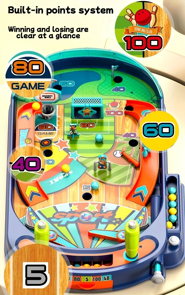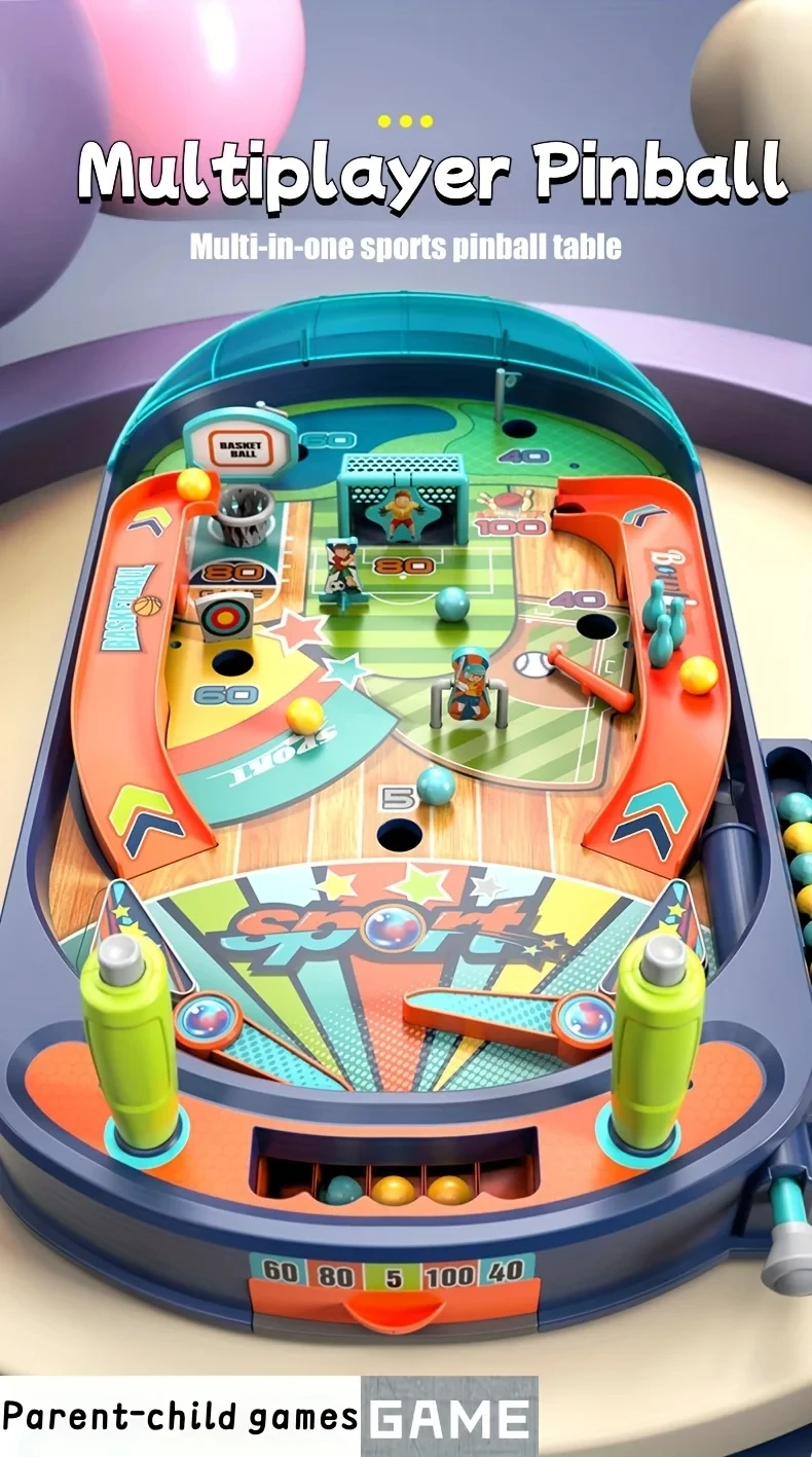 Bring the thrill of the sports arena home! This interactive multi-sport pinball game combines fun and skill, offering basketball, bowling, and golf in one exciting toy. Perfect for kids aged 3+ and great for parent-child interaction.